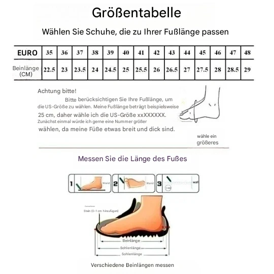Alle Fußtypen können sie tragen, einschließlich breiter und schwerer Füße. JEDES SCHritt ist HARMONIE UND STABILITÄT!!!