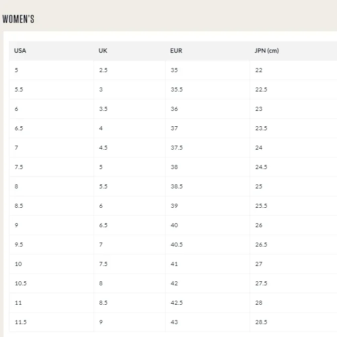Jeśli masz szersze stopy lub wolisz luźniejszy krój, zamów o połowę większy rozmiar.