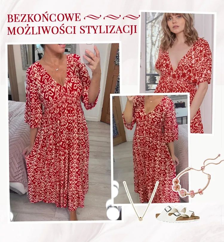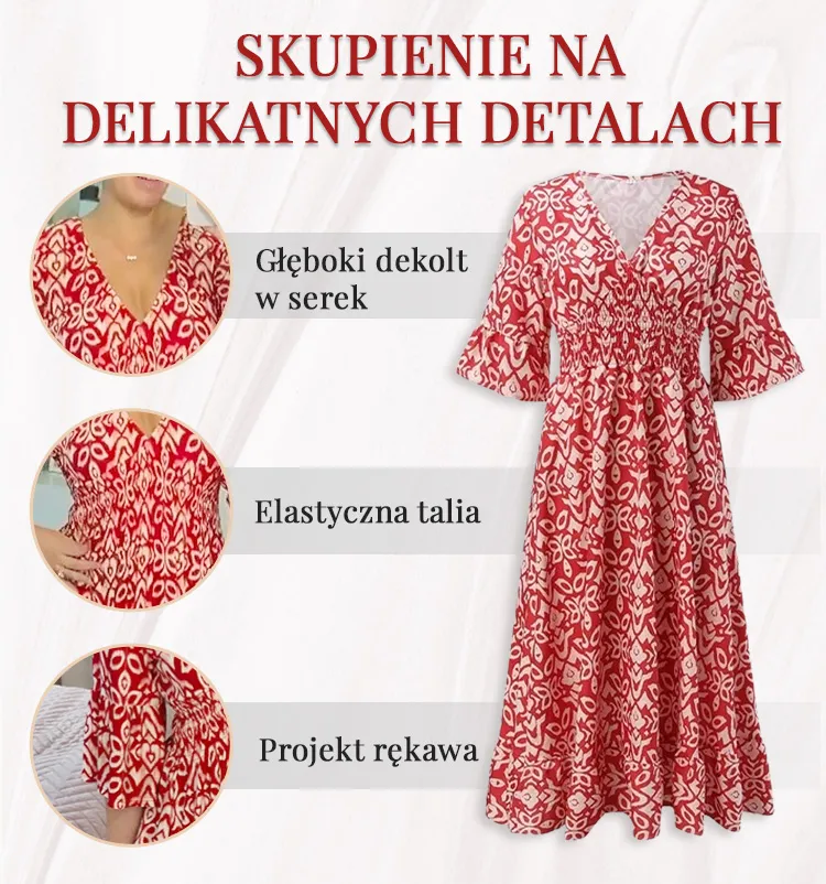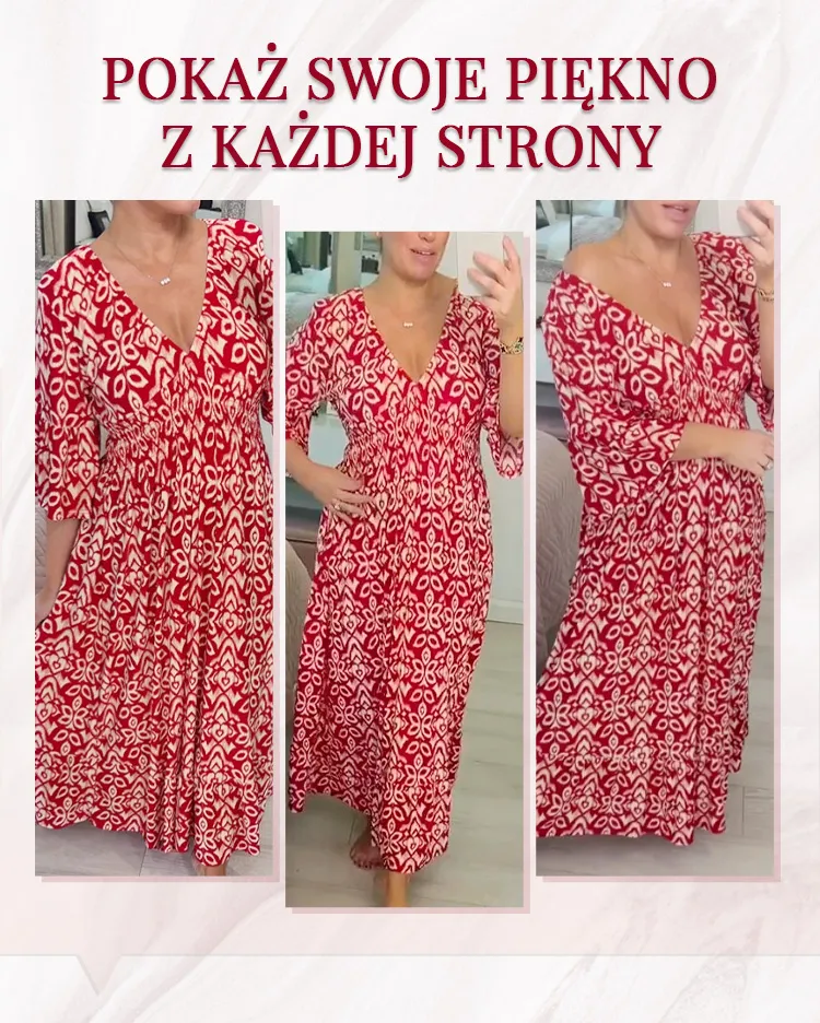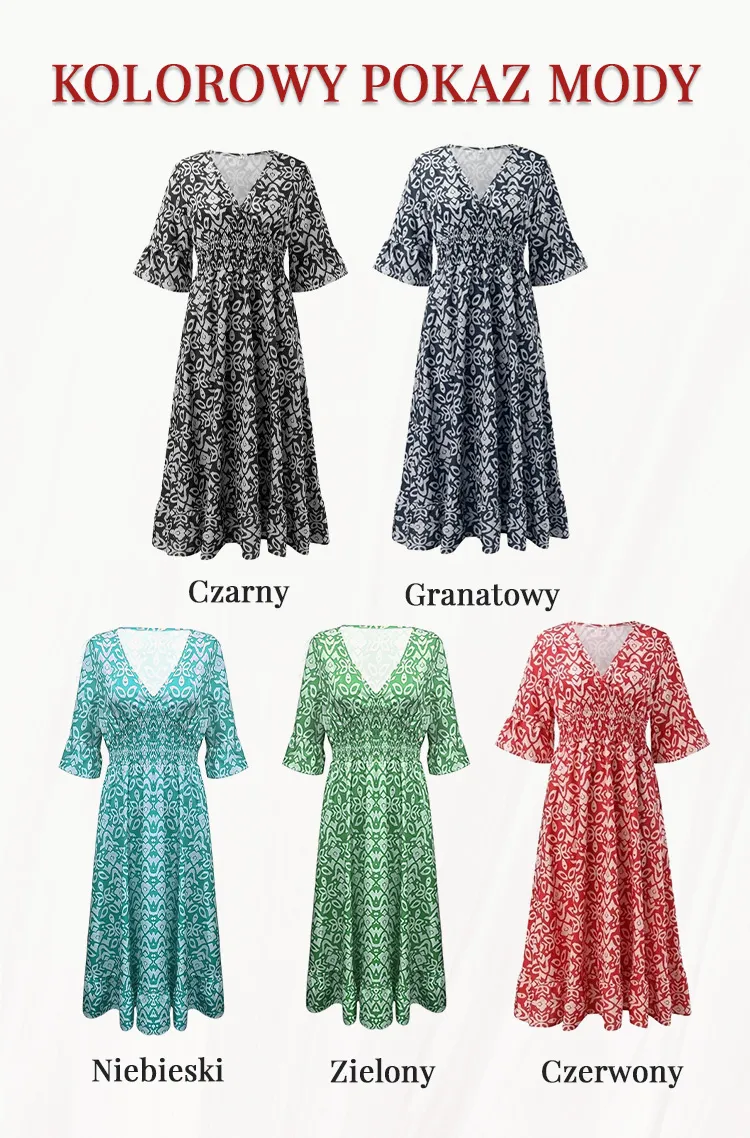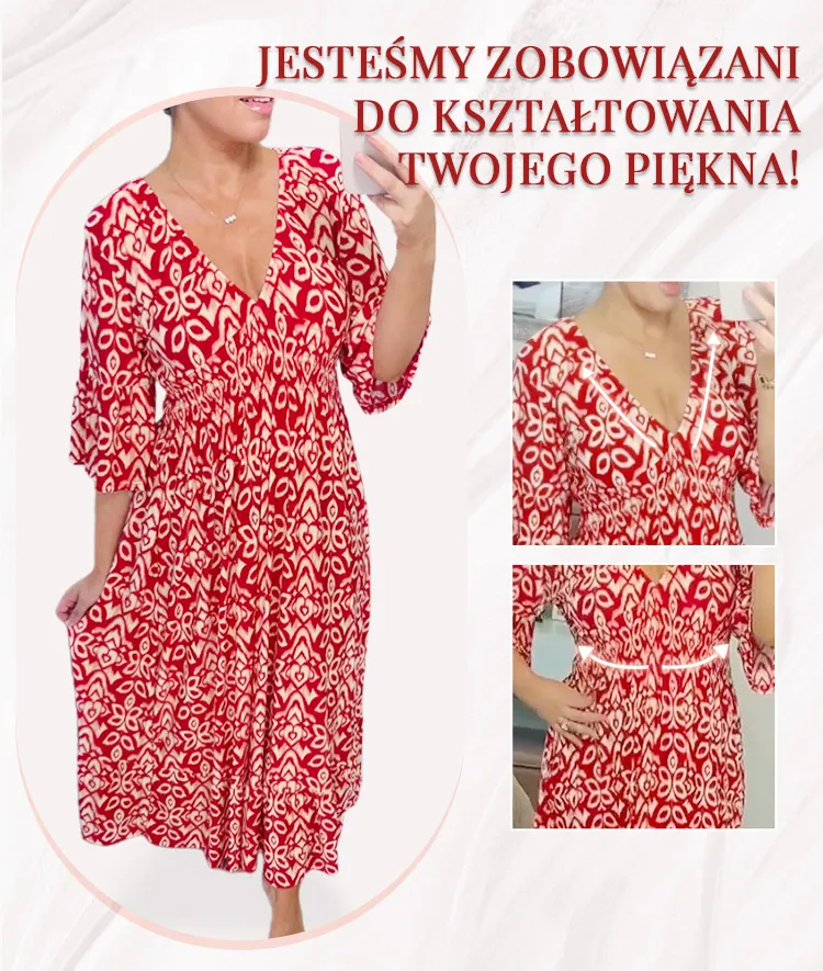 ✨Nowa sukienka casual z dekoltem w serek w kwiaty