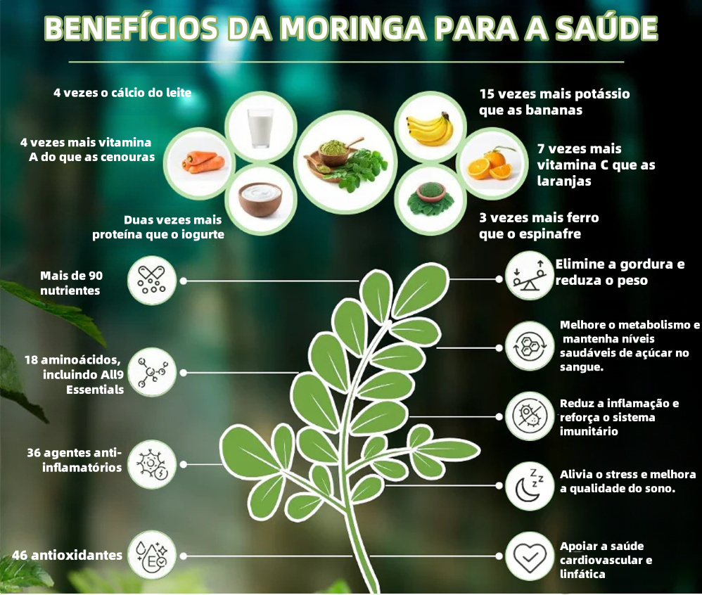HHVB® GLP-1 Moringa Slimming & Health Boost Drops contêm extrato de moringa. Um superalimento natural que ajuda a acelerar o metabolismo. promover a queima de gordura e regular os níveis de açúcar no sangue. Além disso. A moringa apoia a saúde das articulações e dos ossos. enquanto aumenta a vitalidade geral. De acordo com pesquisa apoiada por autoridades de saúde internacionais e agora validada no México. a combinação de moringa e GLP-1 oferece um suporte mais completo para a saúde integral do corpo.